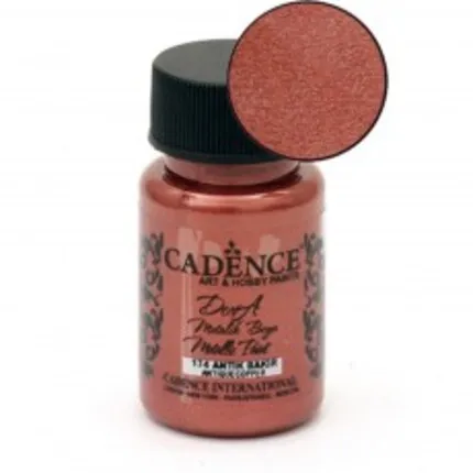 Τα Cadence Dora μεταλλικά χρώματα είναι ένα υψηλής ποιότητας μεταλλικό χρώμα με βάση το νερό για εσωτερική και εξωτερική χρήση χειροτεχνίας και διακοσμητική ζωγραφική. Έχει 2 τόνους στο ίδιο χρώμα. Δίνει το πιο φωτεινό, καλύτερο χρώμα επικάλυψης για την προσθήκη μεταλλικών τόνων στα περισσότερα έργα.